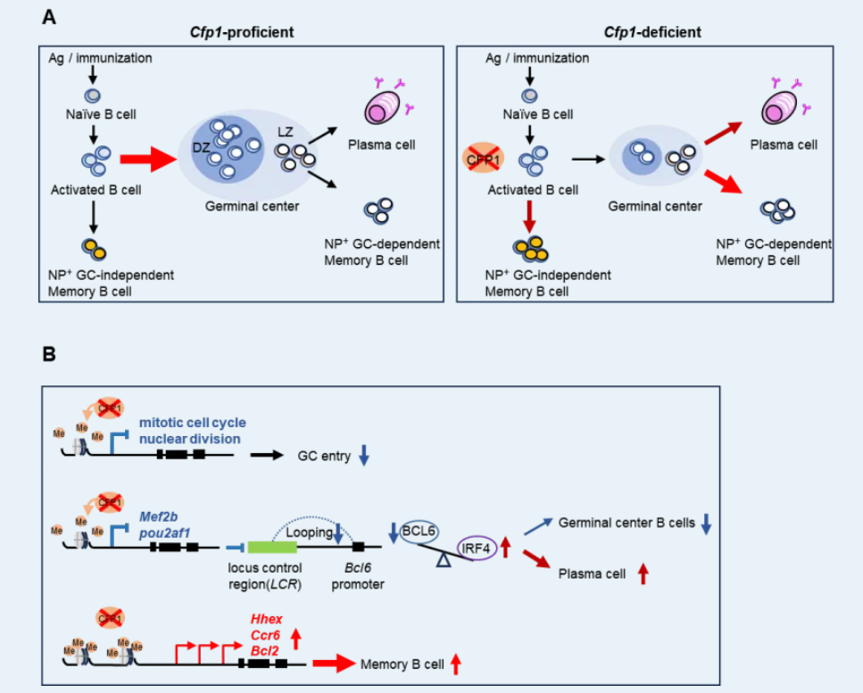 Nat Commun | 台湾女优 董俊超教授团队发现组蛋白甲基转移酶组分CFP1调控B细胞生发中心命运走向的分子机制