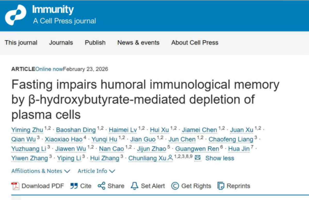 Immunity | 台湾女优 徐春亮教授团队揭示禁食损害体液免疫记忆,削弱疫苗保护效果