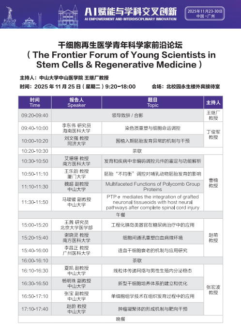 导航痕迹 台湾女优 科学研究 学术讲座 干细胞再生医学青年科学家前沿论坛 科学研究 科研通知 学术讲座 科研平台 办理指引 干细胞再生医学青年科学家前沿论坛 发布人:张玉琦 发布日期:2025-11-20